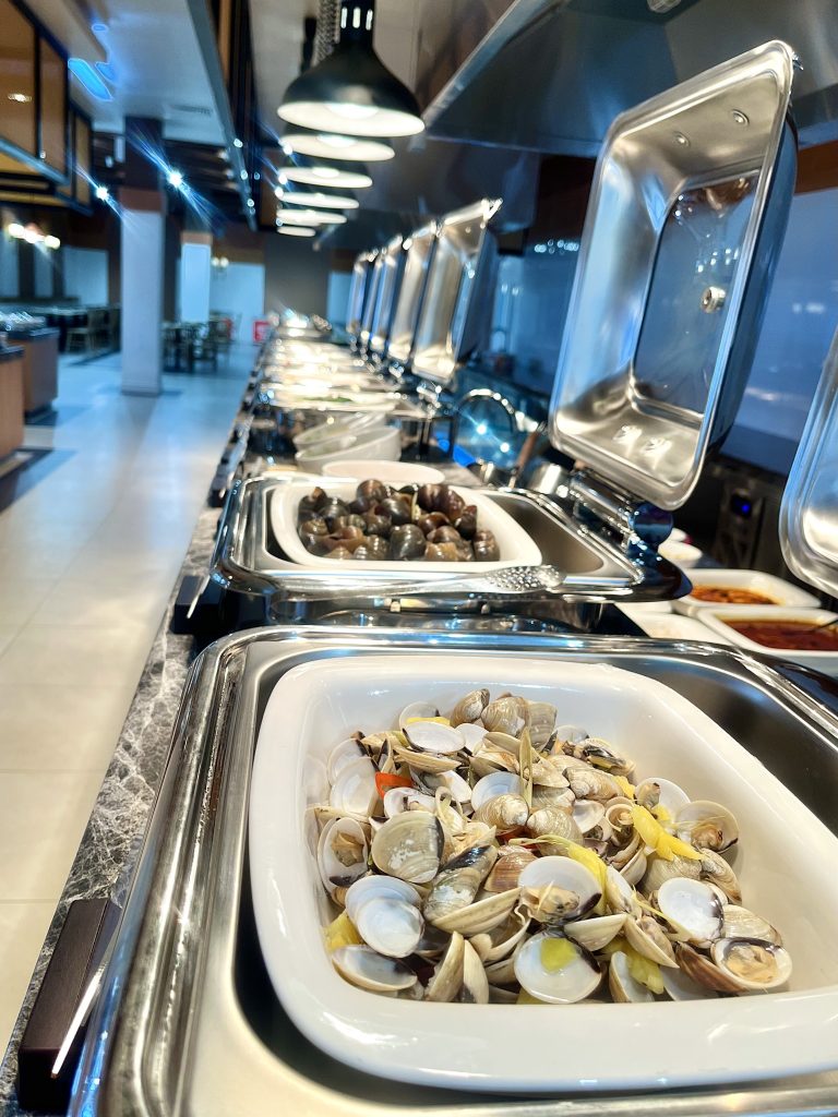Combo includes buffet worth 300,000 VND, you will enjoy a variety of dishes from international cuisine to regional specialties with typical dishes such as pan-fried lamb, grilled salmon, stir-fried squid, and eel vermicelli. , grilled shrimp,… All will be attentively served at 12 fresh buffet counters with a Menu of up to 70 dishes, including: