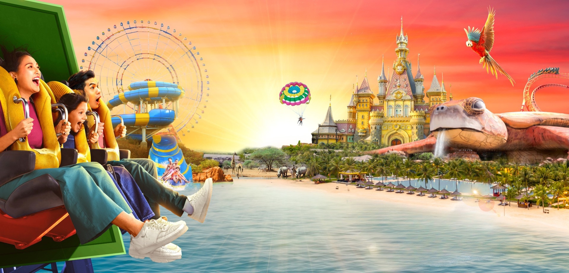 WONDER GO COMBO: Ticket + Buggy Ride + Buffet Service – Unwind and explore effortlessly, without the worry of tired feet, at VinWonders Nam Hoi An – the largest entertainment and wildlife conservation complex in area.