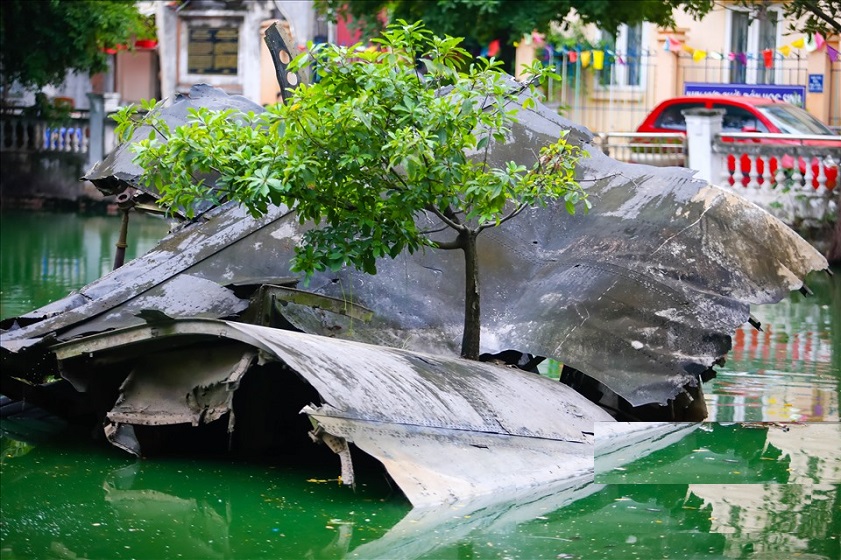 Most of the wreckage is submerged in the water. Only a part of it protrudes above the surface, measuring approximately 4 meters in length and 2 meters in width. A symbol of the U.S. Air Force can be seen on the wreckage. Of all the remnants of the air battle in 1972, only the wreckage in Huu Tiep Lake remains remarkably intact today. To preserve this significant historical site, the Ministry of Culture and Information has recognized the lake as a historical relic. Today, B-52 Lake stands as a symbol of Hanoi’s triumph over the U.S. It also serves as a captivating artifact for tourists visiting the B52 Victory Museum.