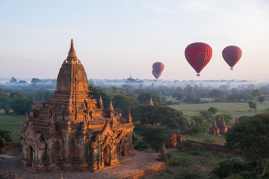 Riding a hot-air balloon to admire stunning views is a must-try experience in Bagan (Source: Collected)
