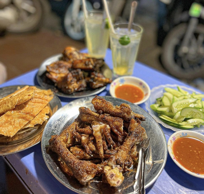 Thinh Vuong is one of the oldest places for grilled chicken on Hanoi’s Chicken Street, boasting over 25 years of history. Popular with both tourists and locals, the menu here features a variety of dishes, including grilled chicken feet, wings, ribs, gizzards, honey-baked bread, grilled sausages, honey-glazed sweet potatoes, fruits, and more. The eatery is also highly regarded for its spacious setting and attentive service.