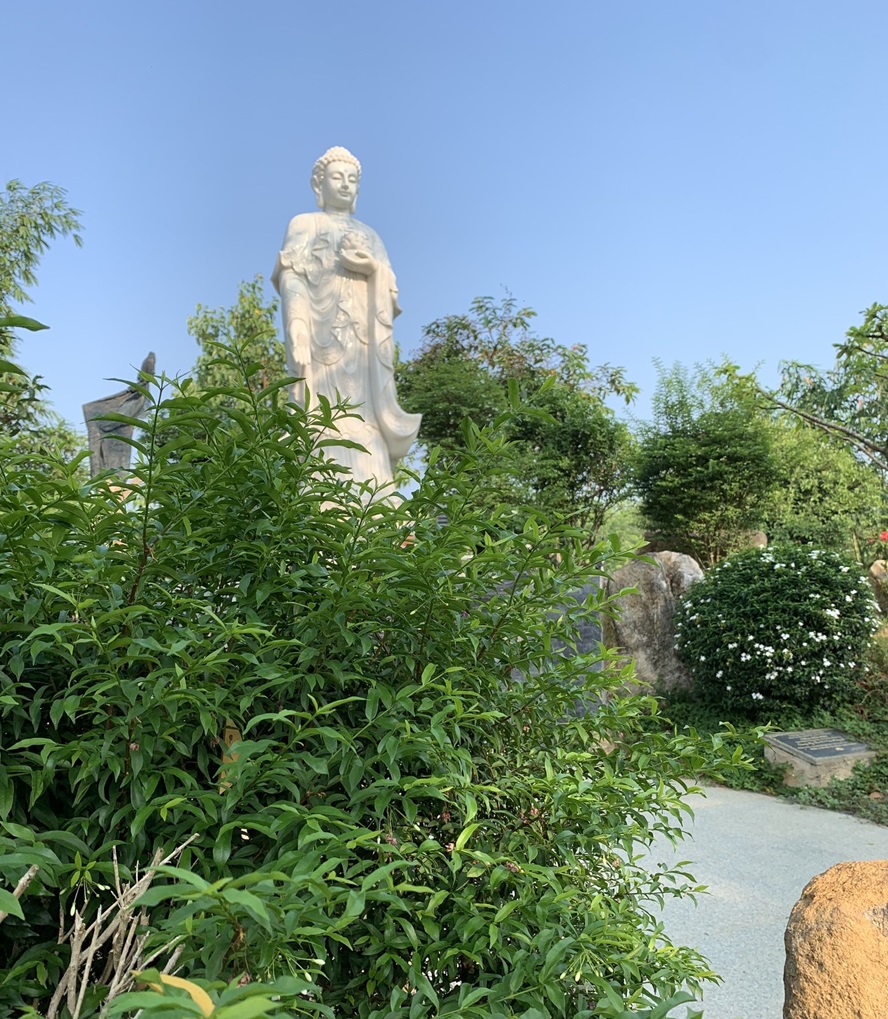 To the right of the Buddha Hall, when viewed from outside, lies a garden adorned with lush green grass. Adjacent to the bamboo grove stood a towering rock formation, stretching 10 meters in height and 20 meters in width, resting upon a tranquil lake. Dominating the scene was a magnificent 5-meter marble statue of Avalokitesvara Bodhisattva, now considered one of the most exquisite rock sculptures in Ho Chi Minh City.