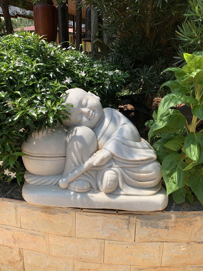 Additionally, there is the Enlightenment Tower, preserving the ashes of the twelve esteemed Buddhist disciples. Behind the main hall is the Monk’s hall, a lecture hall capable of accommodating over 300 attendees. In front of the Monk’s hall are two lush green lawns adorned with ancient tamarind trees, creating a tranquil ambiance.