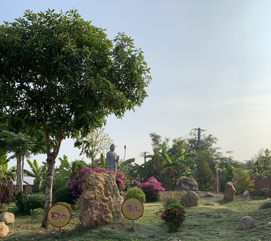 A multitude of trees and plants cover the courtyard of Hoang Phap Buddhist Temple (Source: Collected)
