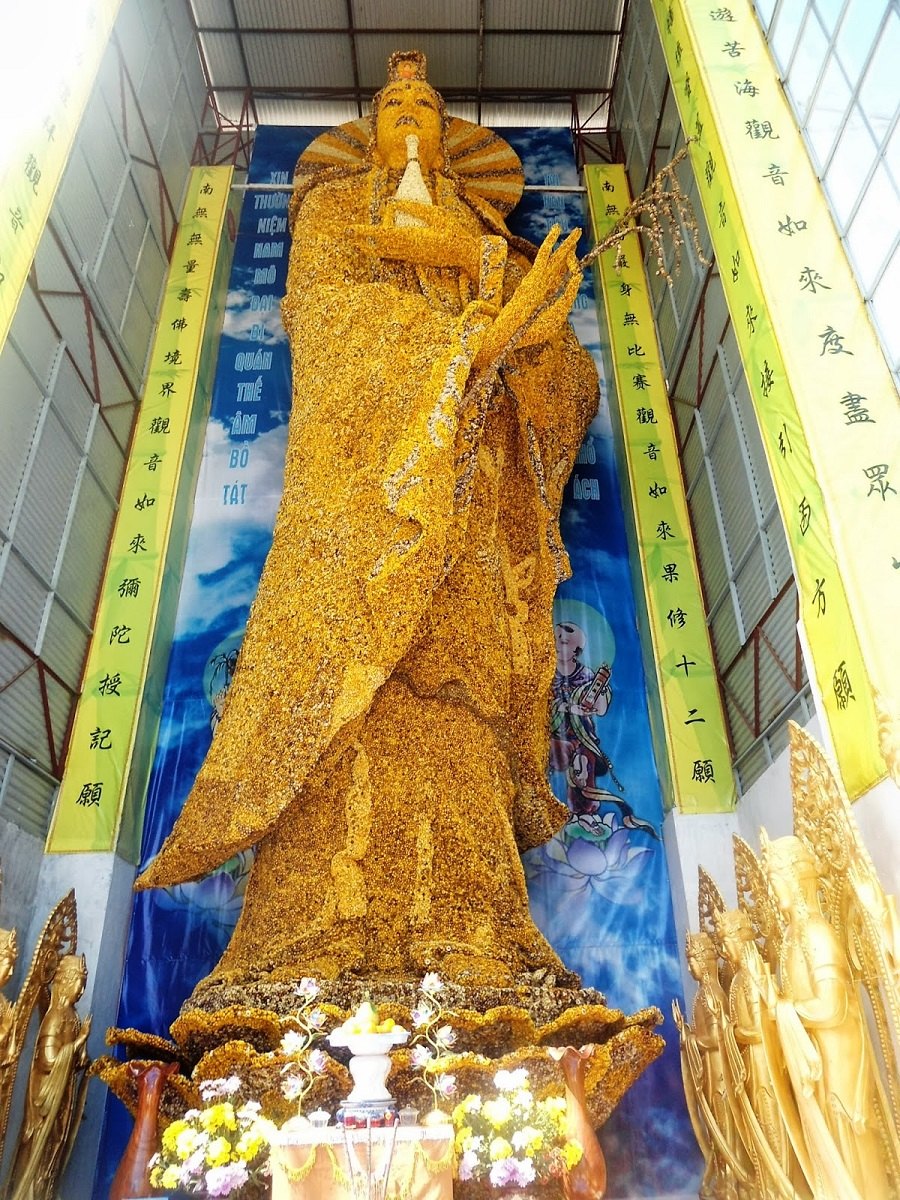 The statue of Avalokiteshvara made from 650,000 everlasting flowers (Source: Collected)