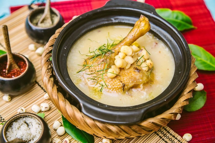 Relish the heart-warming simplicity of Vietnamese chicken porridge with lotus seeds (Source: Collected)