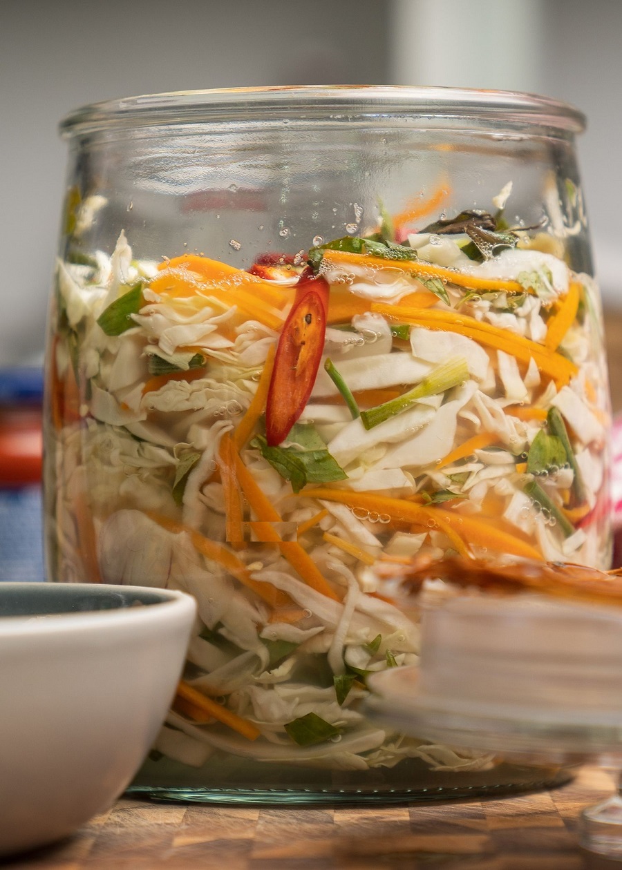 Pickled cabbage is a famous side dish in Vietnamese meals