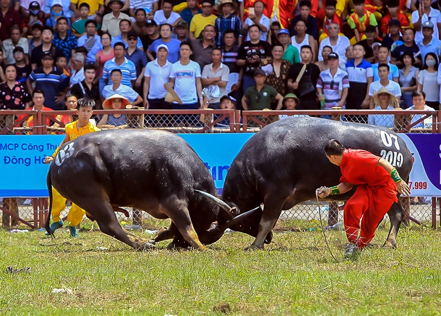 Buffaloes are also closely tied to events like buffalo fighting, organized annually at the beginning of spring, not only honoring the martial spirit but also deeply imprinted with cultural and spiritual significance, carrying beautiful meanings such as praying for a bountiful harvest. Notable buffalo fighting festivals attracting many tourists include festivals in Do Son, Ham Yen, Phu Ninh, Hai Luu, and more.