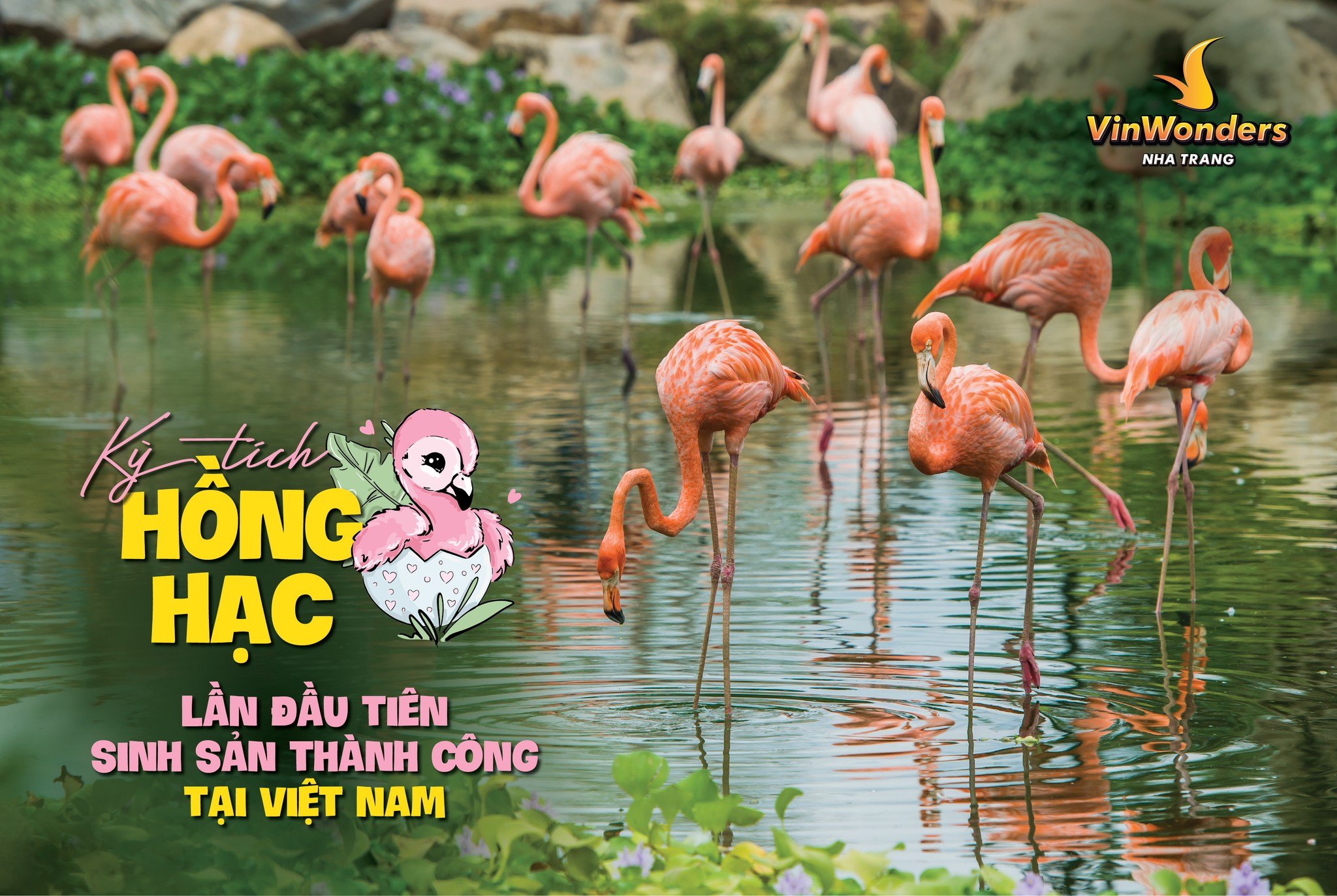 Hồ Hồng hạc thuộc Vườn Quý Vương, VinWonders Nha Trang là nơi đầu tiên ấp nở thành công cá thể Hồng hạc con tại Việt Nam.