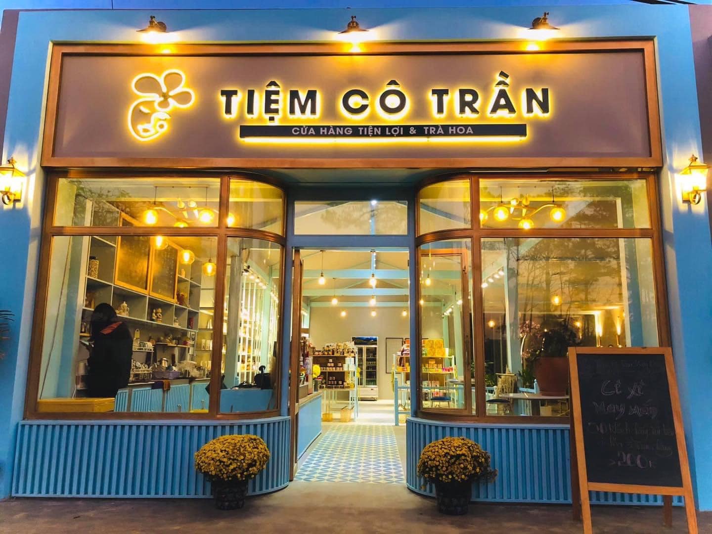 Khác với những quán cà phê Măng Đen mộc mạc được giới thiệu trên, Tiệm Cô Trần thu hút du khách bởi không gian đẹp, sang trọng. Quán được thiết kế theo phong cách Bắc Âu với tông màu chủ đạo là trắng xanh thanh lịch, nhẹ nhàng. Quán bán cà phê, các loại trà nước cùng một số loại bánh ngon. Đến đây, ngoài thưởng thức món ngon, check in cùng không gian đẹp, du khách còn có thể mua đặc sản Măng Đen như trà, cà phê, các loại bánh về làm quà.