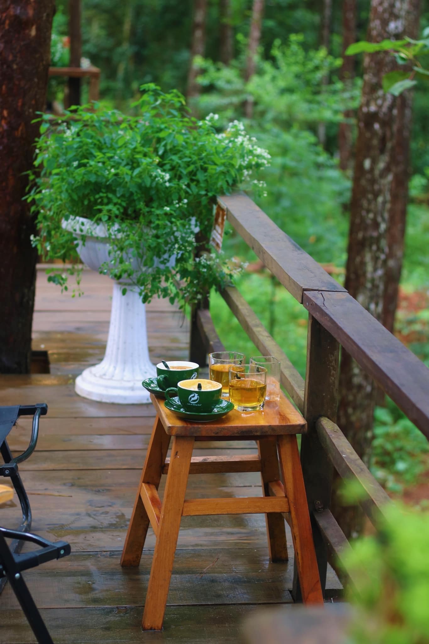 GlampRose nằm ngay trên sườn đồi, bao bọc xung quanh là suối đá và núi rừng nguyên sinh kỳ vĩ. Đến với quán cà phê Măng Đen này, bạn sẽ được ngắm nhìn rừng thông xanh ngát, con thác trắng xóa cùng phong cảnh thiên nhiên hữu tình. Quán phục vụ cà phê homemade đặc trưng của vùng đất Tây Nguyên. Hương vị cà phê có vị đắng nhưng không gắt, cùng một chút chua nhẹ và ngọt tự nhiên. Thưởng thức cà phê ngon trong không gian chill chill của quán là một trải nghiệm thú vị không thể bỏ lỡ khi ghé đến Măng Đen.