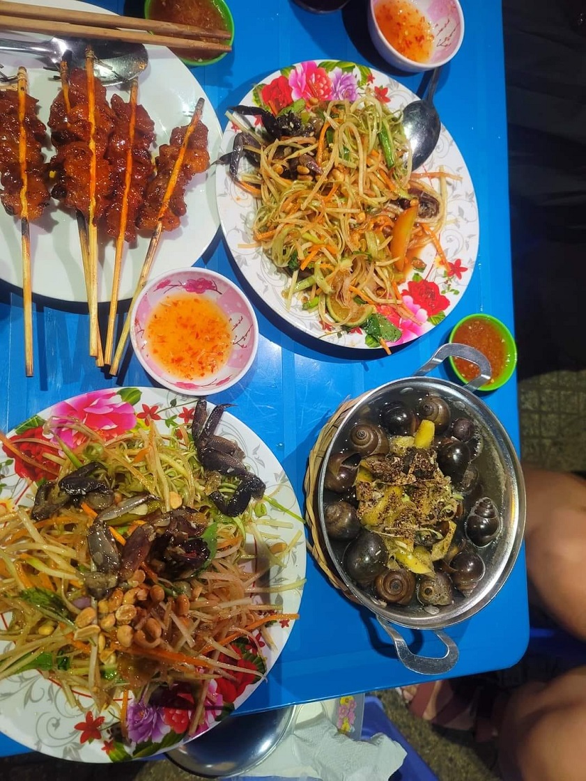Quán phục vụ các món gỏi đu đủ, trứng cút nướng, bánh tráng, chân gà, hàu nướng… Đến với Rạch Giá, du khách đừng bỏ qua địa chỉ ẩm thực hấp dẫn này nhé!