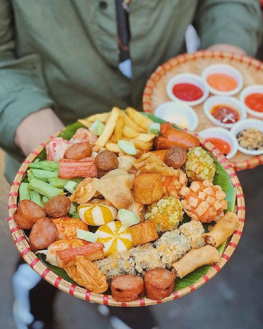 Với mức giá 69K, thực khách sẽ được thưởng thức đủ loại xiên que từ xúc xích, hồ lô, chả cá, viên thả lẩu, há cảo, chả tôm và nhiều món ăn vặt hấp dẫn khác. Bạn có thể lựa chọn chiên thường hoặc chiên mắm tỏi. Ngoài ra, bạn còn có thể mau mang về với giá 69.000 VNĐ/350g.