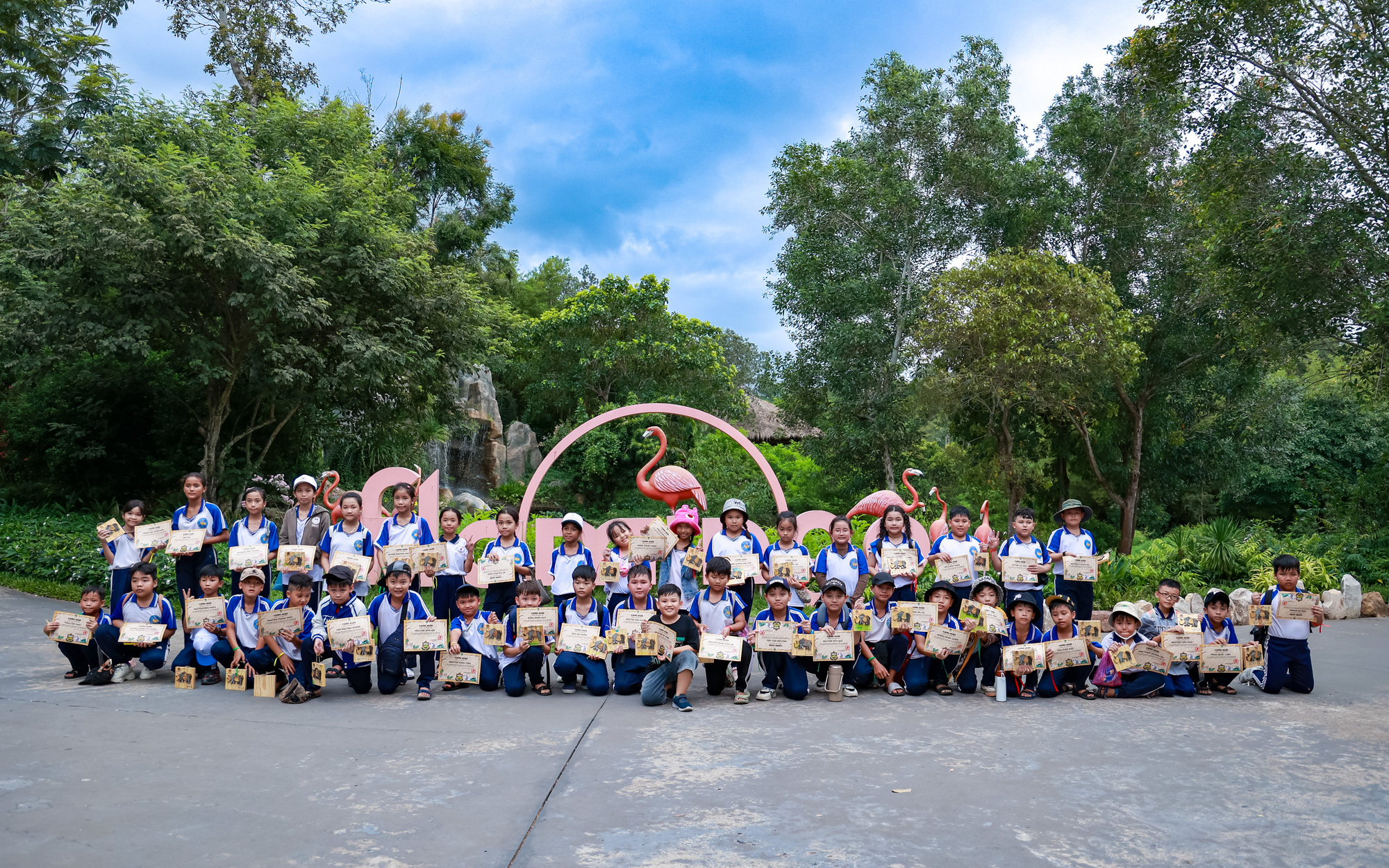 Trong khi đó tại VinWonders Phú Quốc, 350 học sinh trên đảo ngọc đã hào hứng chinh phục hành trình phiêu lưu “Mở khóa thế giới Xanh” qua 05 trạm thử thách: khám phá thế giới động vật hoang dã Safari và tìm hiểu kiến thức về hơn 150 loài quý hiếm; tham quan Cung điện Hải Vương với thế giới đại dương kỳ bí của hơn 255.000 cá thể; hóa thân thành “chiến binh thiện chiến” và thỏa sức vẫy vùng trong làn nước mát lạnh tại “Đại chiến thế giới nước”; chinh phục loạt game hành động đỉnh cao tại “Thế giới phiêu lưu” và lạc vào thế giới cổ tích hằng mơ ước với các nhân vật yêu thích như Alice, Aladin… tại “Thế giới diệu kỳ”.