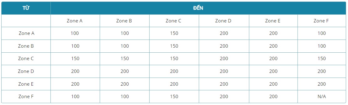- Khu vực C: Hàn Quốc, Nhật Bản, Trung Quốc, các nước châu Á, châu Úc khác (trừ khu vực A, B và Úc)