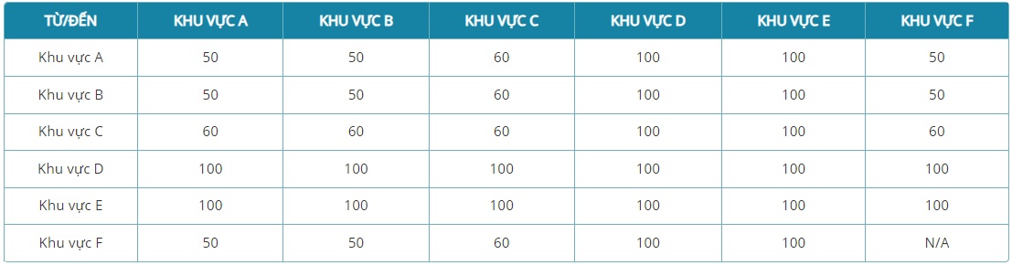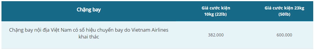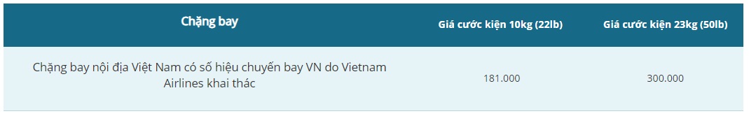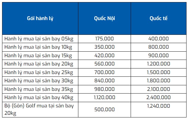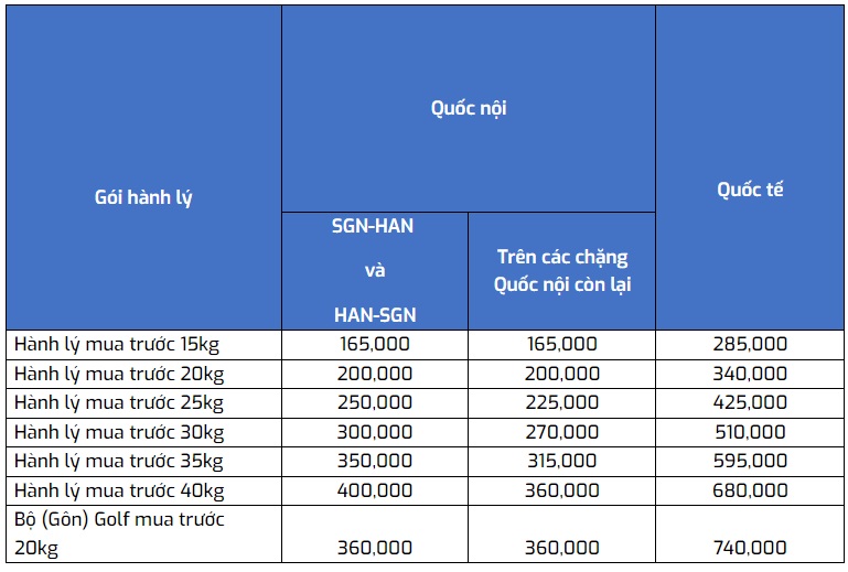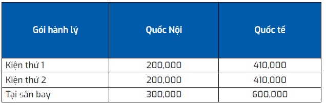 - Phí mua trước hành lý ký gửi chặng nội địa (Đơn vị tiền tệ: VNĐ)