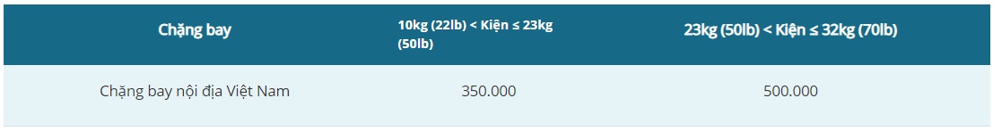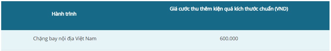 Khi kiện hành lý vượt quá trọng lượng/kích thước chuẩn, hành khách cần trả giá cước kiện chuẩn + phí thu thêm quá trọng lượng/kích thước chuẩn.