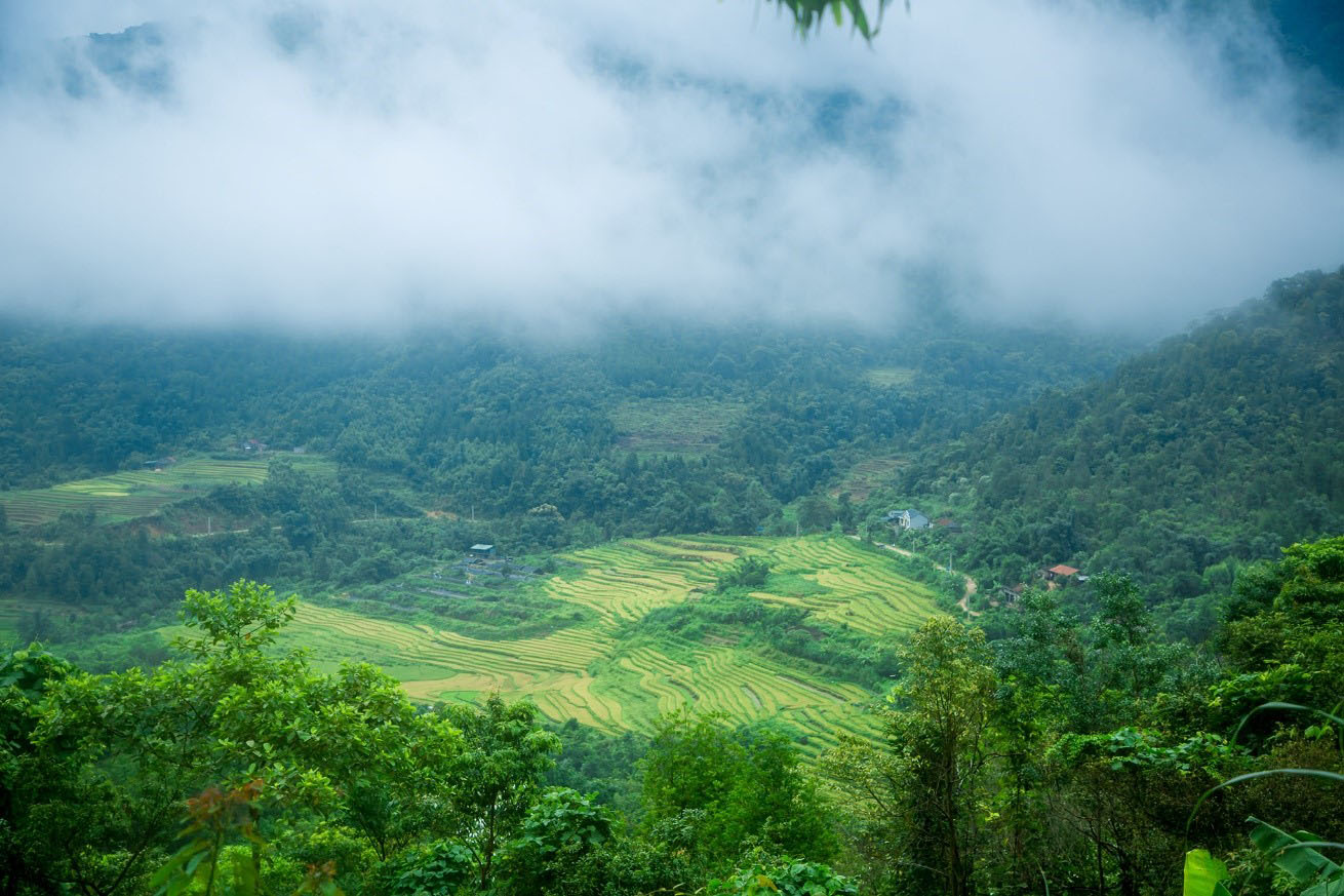 Thấp thoáng phía xa là những đàn bò, đàn dê thảnh thơi gặm cỏ giữa bình nguyên. Những mái nhà, cánh đồng xanh mướt của người Dao và người Sán Chỉ uốn lượn dưới thung lũng đẹp tới nao lòng. Tất cả sẽ mang đến cho bạn cảm giác khoan khoái, dễ chịu và ngập tràn sự bình yên, an lành.