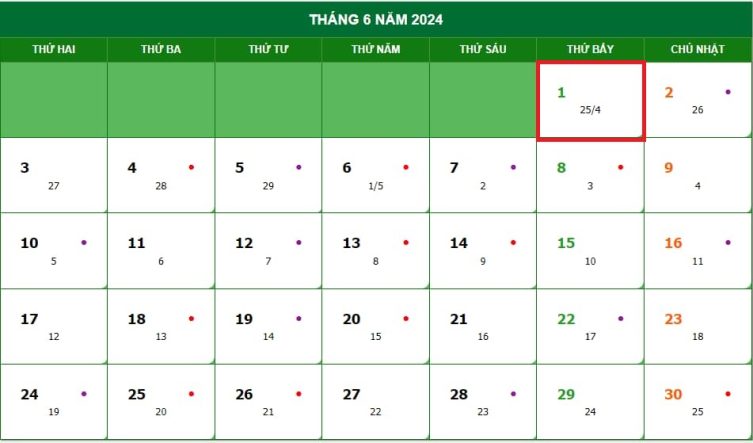 Ngày Quốc tế Thiếu nhi 1/6 là thứ mấy? Ngày 1/6 năm 2024 rơi vào ngày thứ bảy. Tuy nhiên ngày này không phải là một ngày nghỉ trong năm được Nhà nước quy định. Vì thế, các bạn học sinh không được nghỉ, trừ khi ngày 1/6 rơi vào cuối tuần.